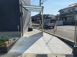 防草シート・砂利敷き、テラス、フェンスの施工を行いました。
