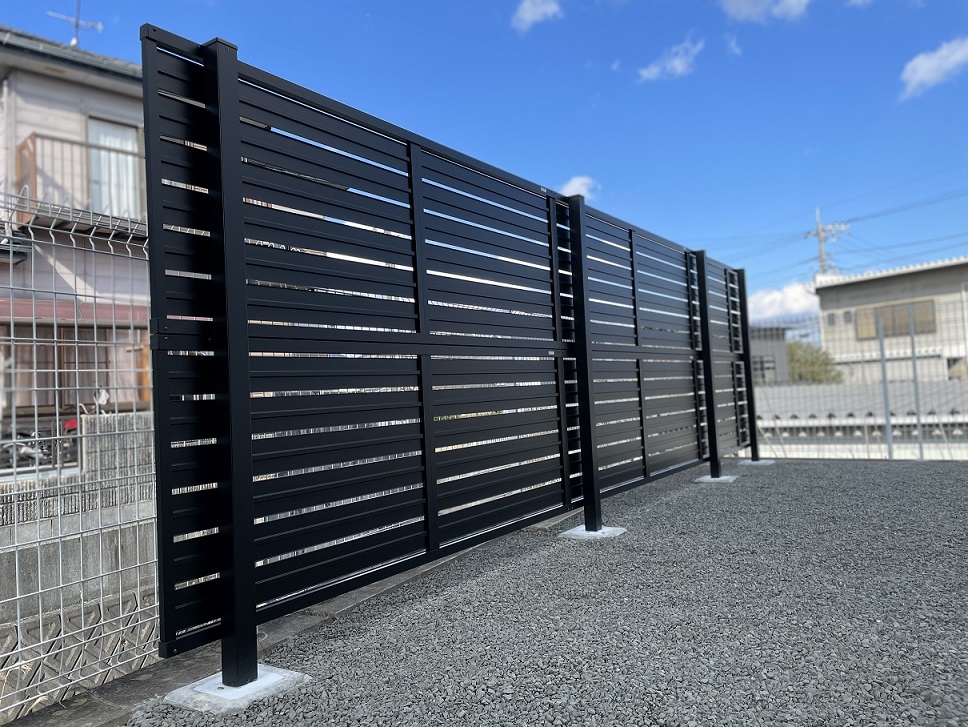 目隠しフェンス・メッシュフェンス・機能門柱・砂利敷きの施工を行いました。 機能門柱は、LIXIL 機能門柱FWを使用しました。 選びやすく、使いやすい最もシンプルなデザインで、さりげなく個性を演出できる商品です。 目隠しフェンスは、LIXIL フェンスAB 多段柱という商品です。 ルーバー・スリット・目隠し・格子・採光パネルなど多彩なデザインが揃っています。 お客様の目的に最適な組み合わせができます。