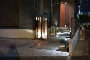 アプローチに石張りとインターロッキングを交互に施工させていただきどちらとも際立つ仕上がりとなりました。 全体を照らすのではなく部分によって照らすことにより、カッコ良く明る過ぎない演出をしています。 花壇に花などを植えたらさらに綺麗にみえ、モダンなオープン外構の中に美しさを取り入れてくれると思います。