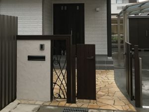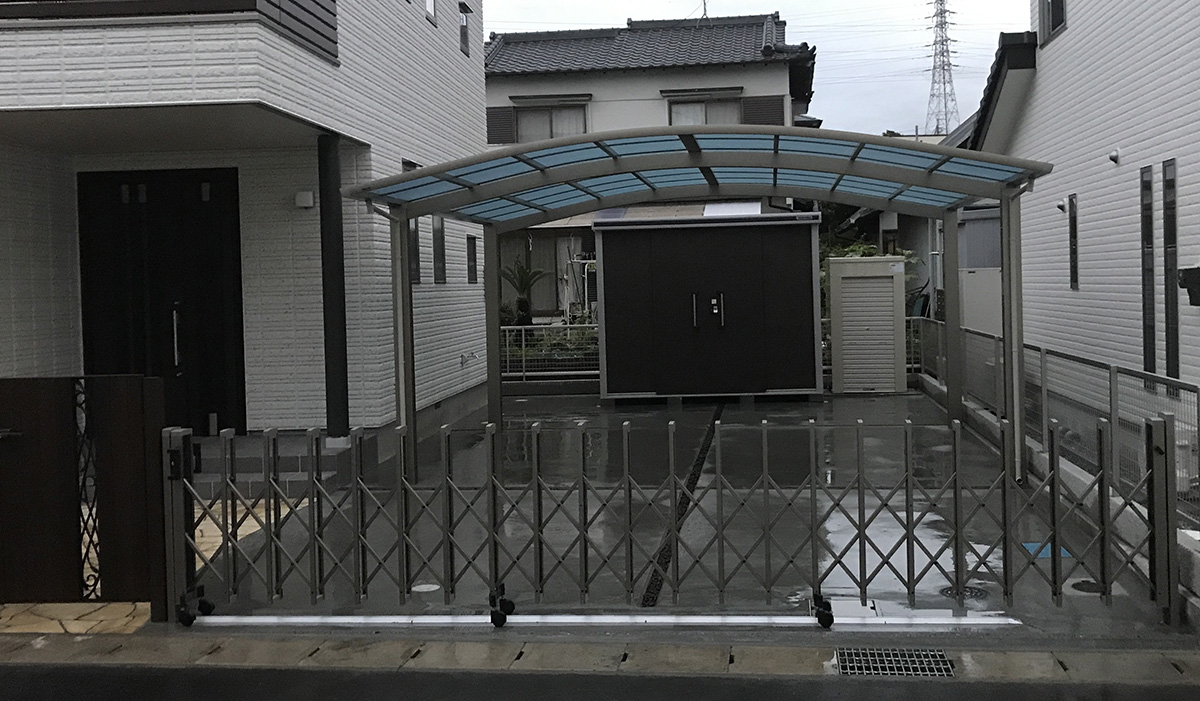 アプローチの綺麗さが際立つ仕上がりとなりました。 門袖や門扉には統一感を意識し、シックなデザインに。 愛車を守る為のカーテンゲートやカーポートで、普段よりもより一層安心して生活していただけたら幸いです。