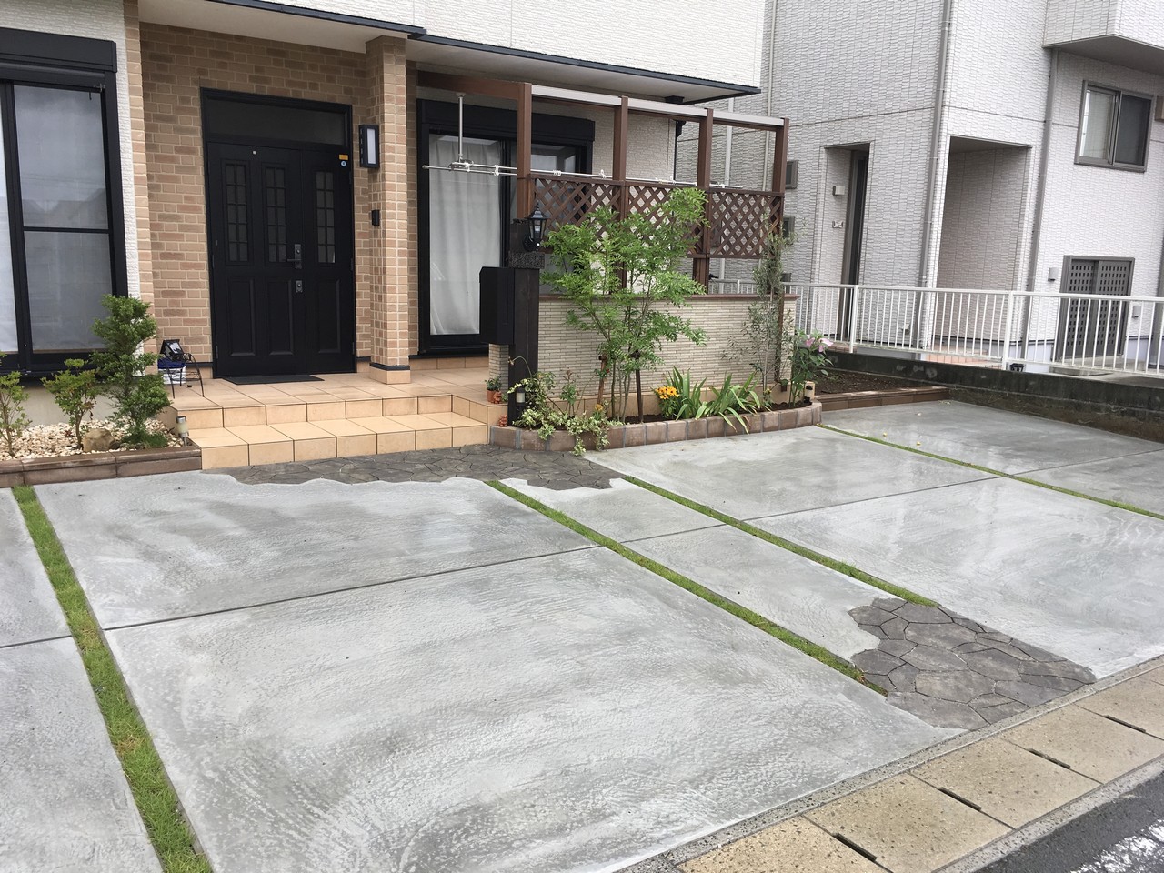 石張り・花壇・テラス・駐車場コンクリートの施工をさせていただきました。